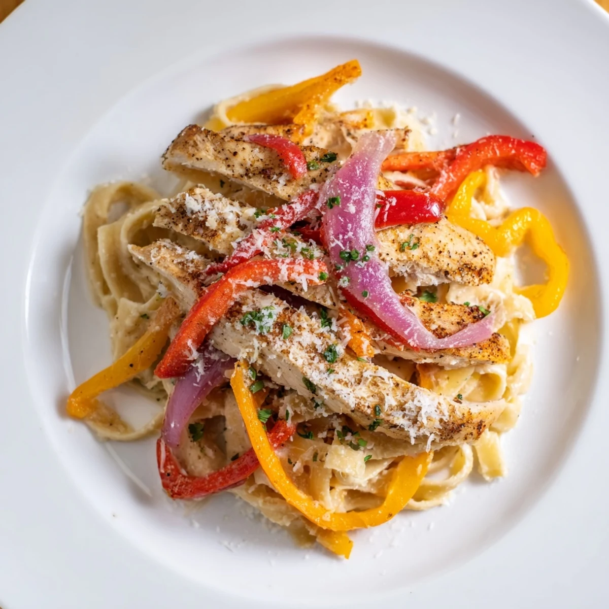 This dish features savory Cajun-seasoned chicken breasts cooked to perfection and paired with colorful bell peppers sautéed until tender. Combined with fettuccine pasta coated in a rich Alfredo sauce made from butter, cream, Parmesan cheese, and subtle nutmeg, it delivers a harmonious balance of spices and creaminess. Garnished with fresh parsley and extra Parmesan, this hearty meal is perfect for those seeking a comforting yet slightly spicy dinner option. Cooking times are quick, making it ideal for a flavorful weeknight dish.