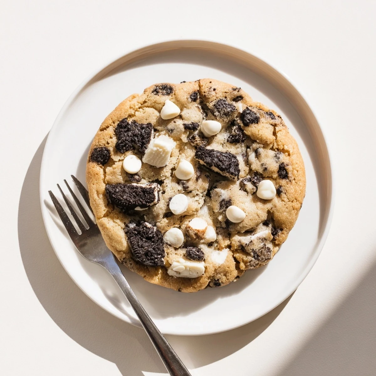 These soft, chewy cookies combine crushed chocolate sandwich cookies with creamy white chocolate chips for the ultimate cookies 'n cream experience. The dough comes together quickly with softened butter, brown sugar, and vanilla, then gets loaded with chopped Oreos and white chocolate morsels. Bake for just 10-12 minutes until edges turn golden for treats that are crispy outside and tender inside. Perfect for dessert, snack time, or anytime you crave that classic flavor combination.