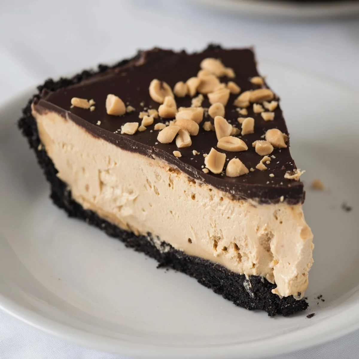 This indulgent dessert features a velvety peanut butter cream filling nestled inside a crumbly chocolate sandwich cookie crust. The filling combines creamy peanut butter with cream cheese, powdered sugar, and freshly whipped heavy cream for an incredibly smooth texture. After just 20 minutes of active preparation, the pie needs 4 hours to chill until perfectly set. Optional chocolate ganache topping adds an extra layer of richness, while chopped peanuts provide a satisfying crunch.