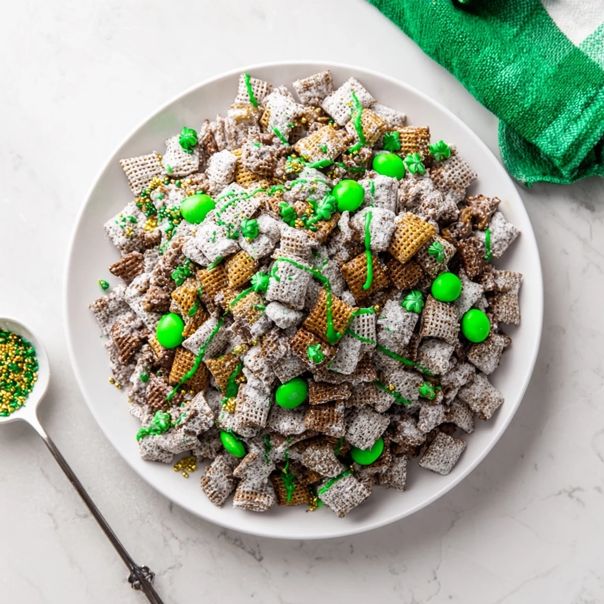 - 1/4 cup green and gold sprinkles: Because presentation matters even when it's just snack mix