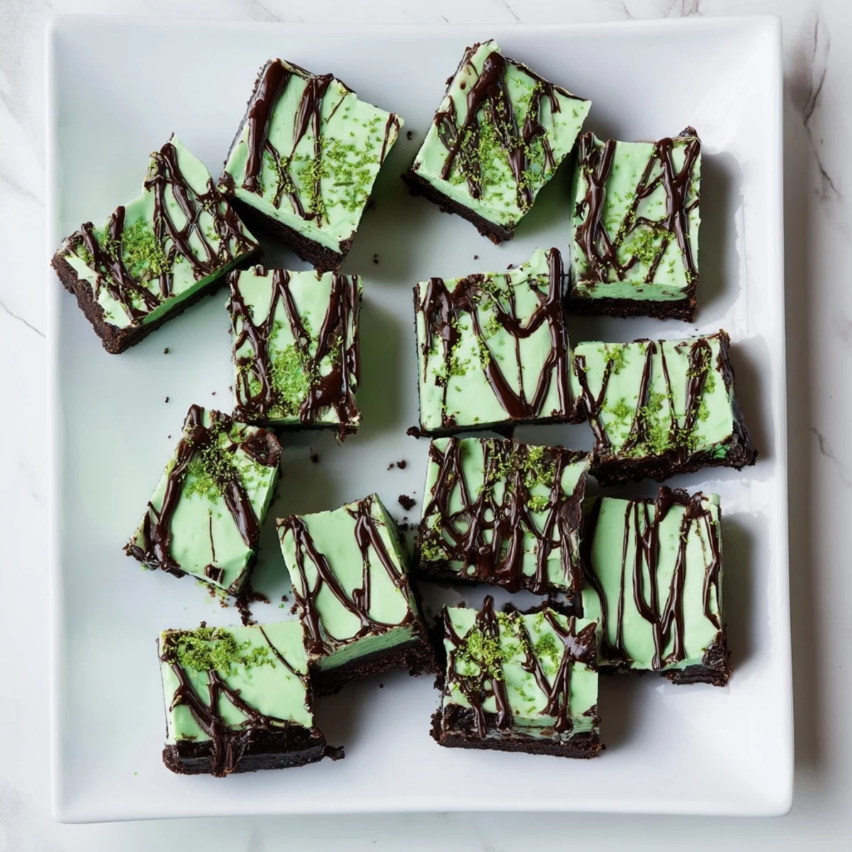 - Once the fudge is completely set, melt some dark chocolate and drizzle it over the top. Add those green sprinkles immediately while the chocolate is still wet so they stick